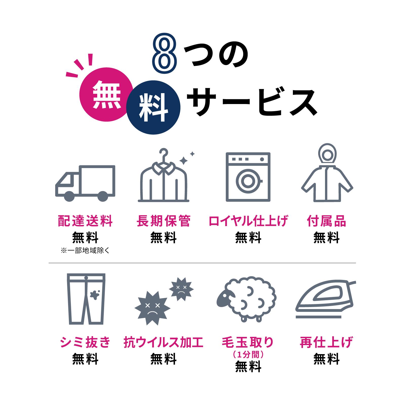 ・すべての保管プランは配達送料無料、さらにシミ抜き無料・長期保管無料などの8つの無料サービスをご利用いただけます。